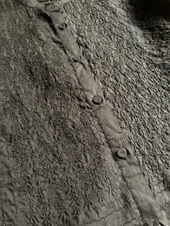 釦は袖口も含め、すべて共布のくるみボタン。