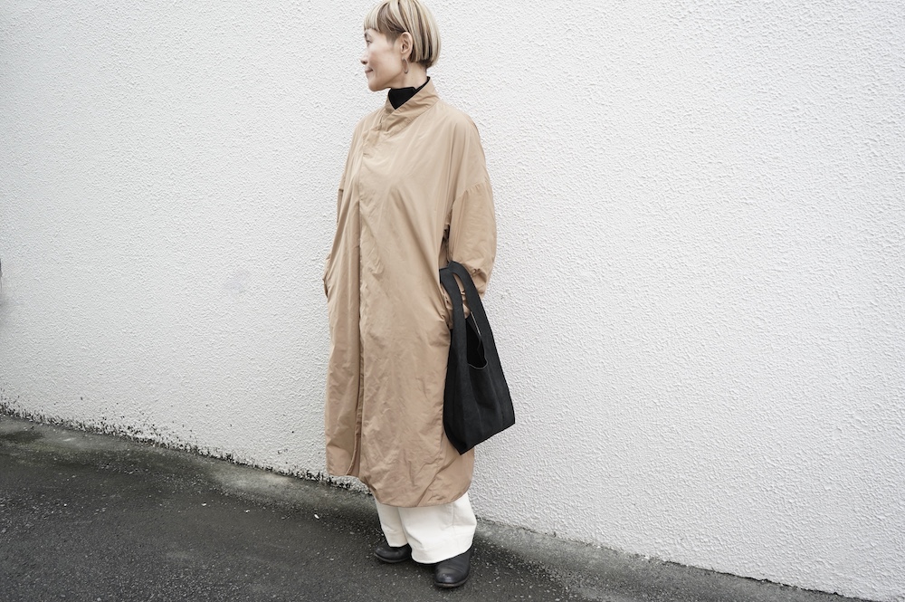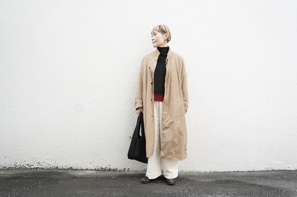 アンバーと付くだけに、言われてみればほんのり赤味がかったベージュです。コートは人によって必要なタイプが異なり、毎年各ブランドでらしさのあるものをセレクトしています。このNO CONTROL AIRのコートは、「温かいコート」をお探しの方にはお勧めしていません。温かさを売りにしたコートではなく、長い季節で着用できる良さのあるコートです。