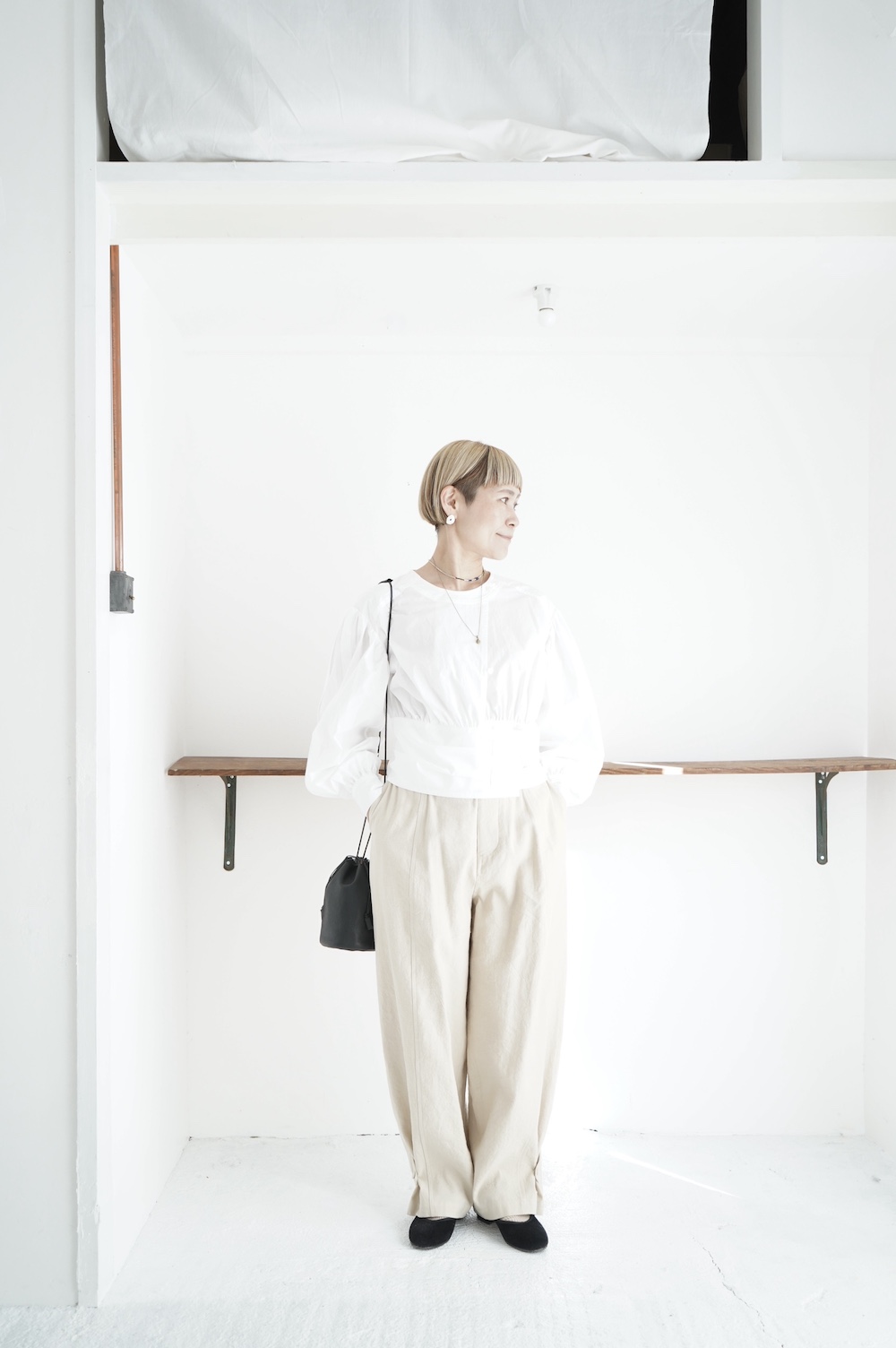 klauseのブラウスをラフに合わせたらカジュアルなスタイリングも。