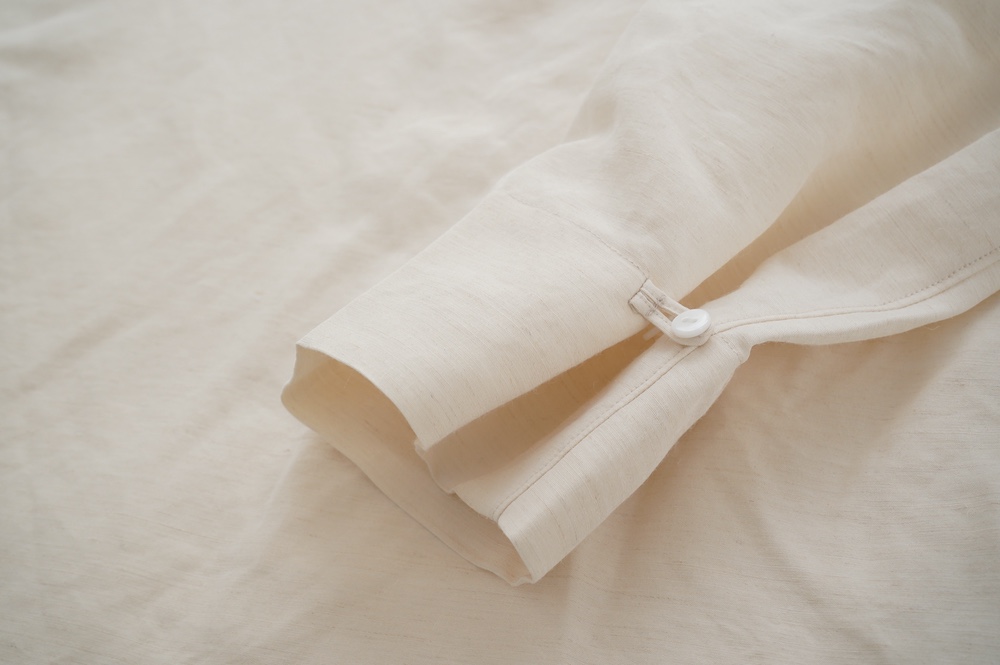 もう一つはボートネックを作っています。ウォッシャブルシルクではヘンリーネックは作っていないので、この2つの販売となります。また、ウォッシャブルシルクのシリーズは今後も力を入れていきたいシリーズですが、今回ご紹介した生地と全く同じものは、もしかしたら今回限りになるかもしれません。生産者がご高齢で引退されるそうで、後継はいないそうです。そんな話を聞くたびに何とかならないもんかと思いを馳せますが。。