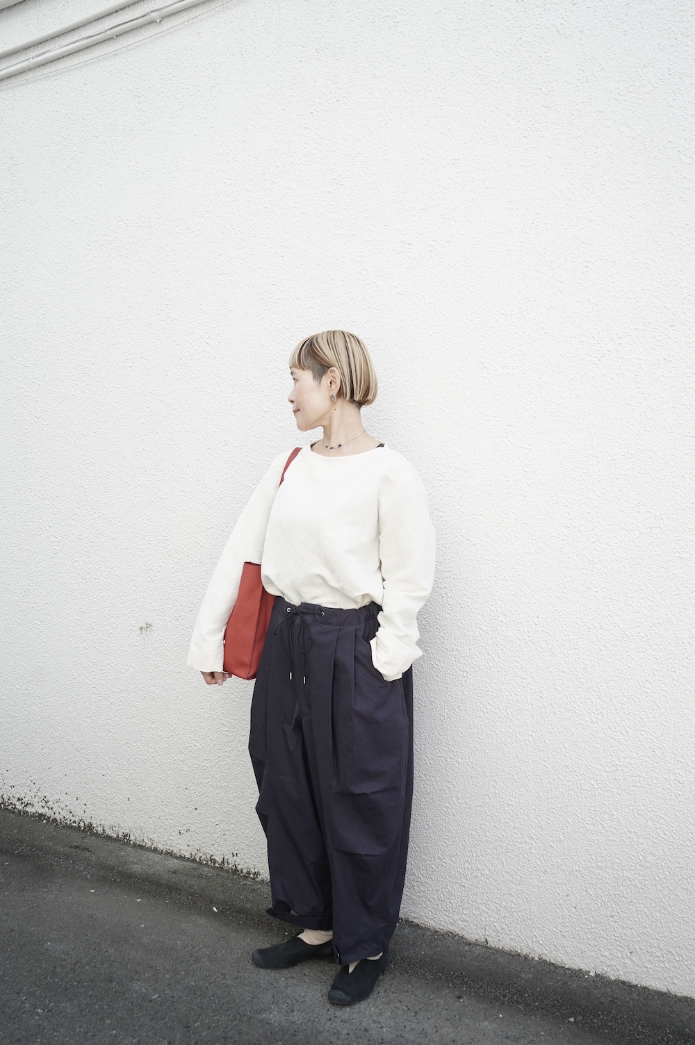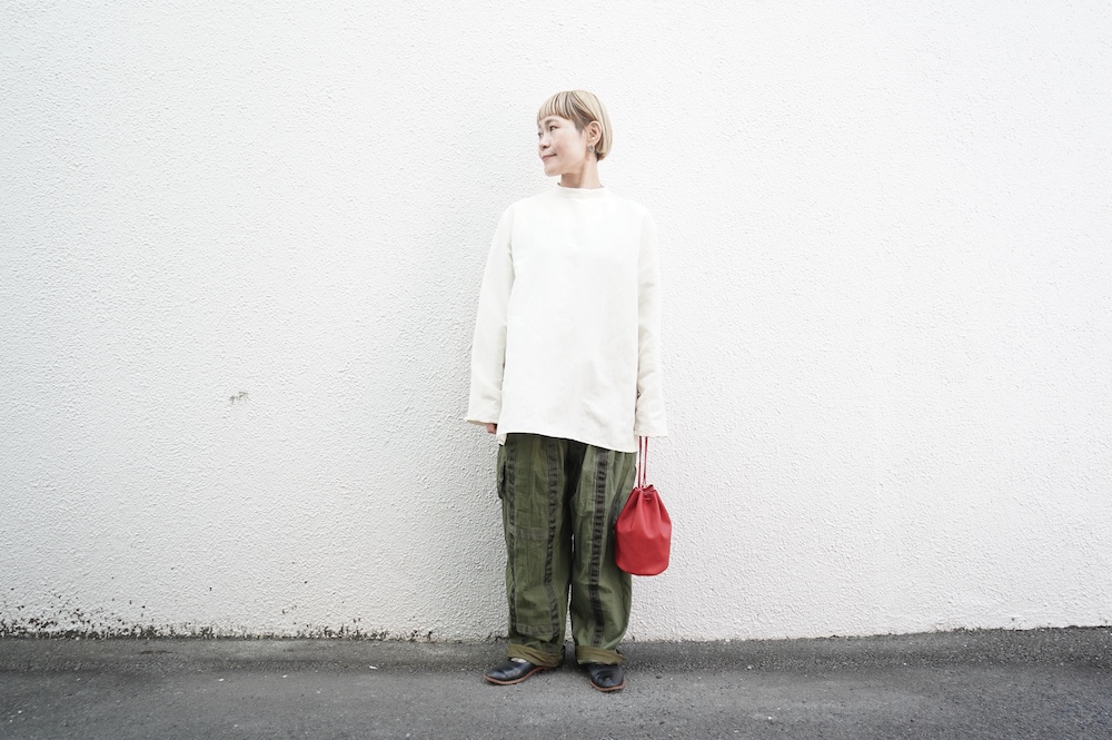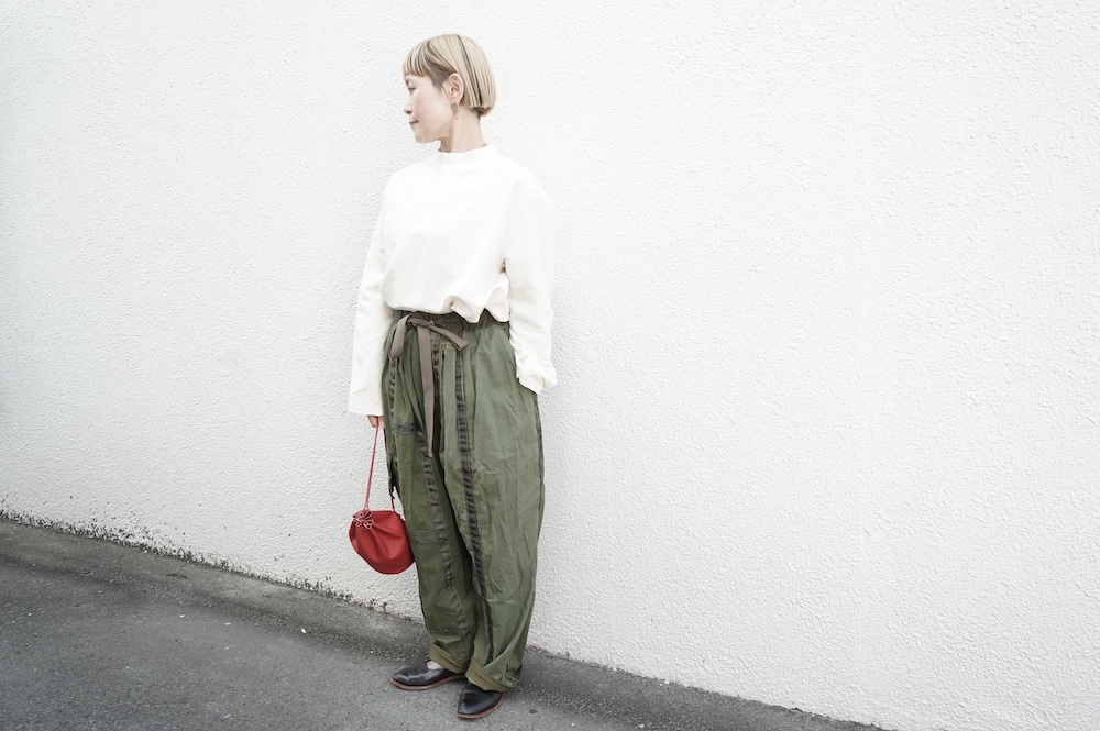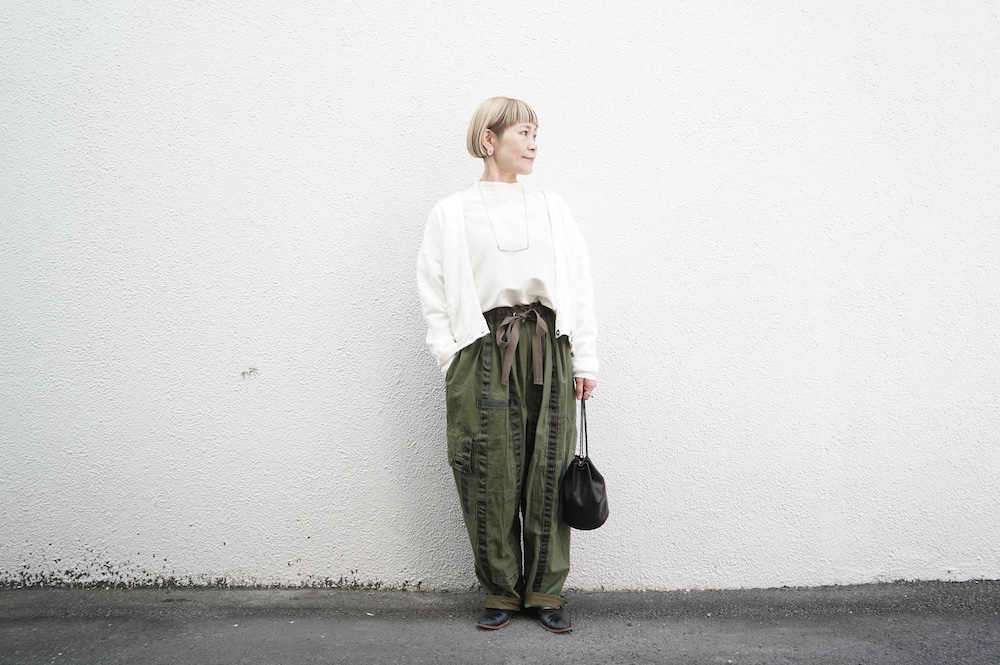 ARTEPOVERAのリメイクパンツに合わせてカジュアルに。