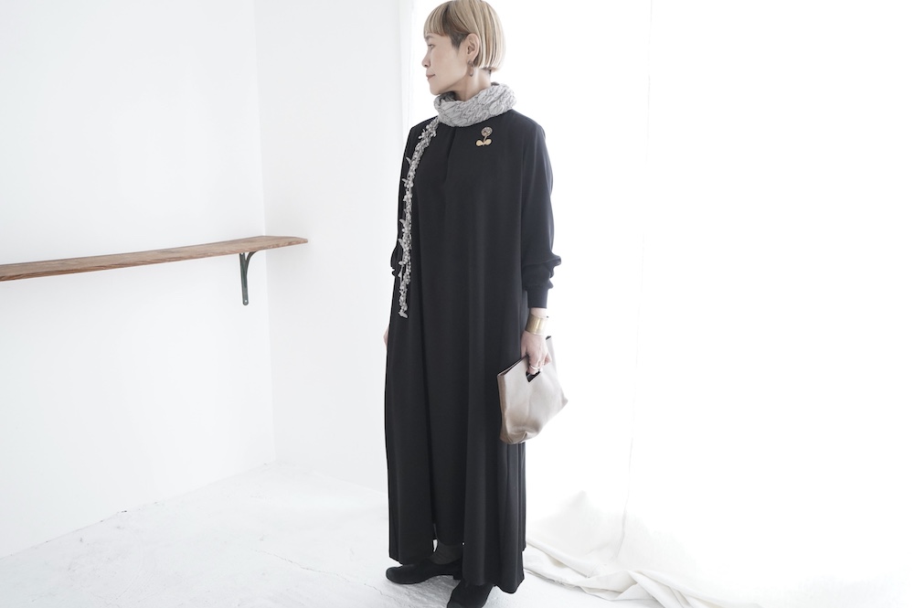 今年も式典のシーズンが近づいてまいりました。また、そろそろちゃんとした冠婚葬祭のブラックを買い直したいという方も少なくない。昨今、昔のように一斉にお洋服を揃えることが困難になってきているため、入荷したものからご紹介を始めていこうと思います。そろそろご提案予定の9割は入荷していますので、店頭へご来店可能な方はぜひ直接ご覧ください。今日はゴーシュの素敵なワンピースをご紹介いたします。