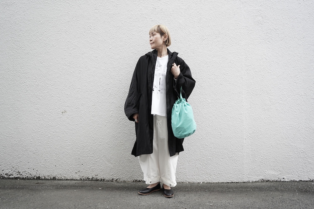 これ、スニーカーでキャップとか被っても可愛いですよ。カバンはナップサックとか。