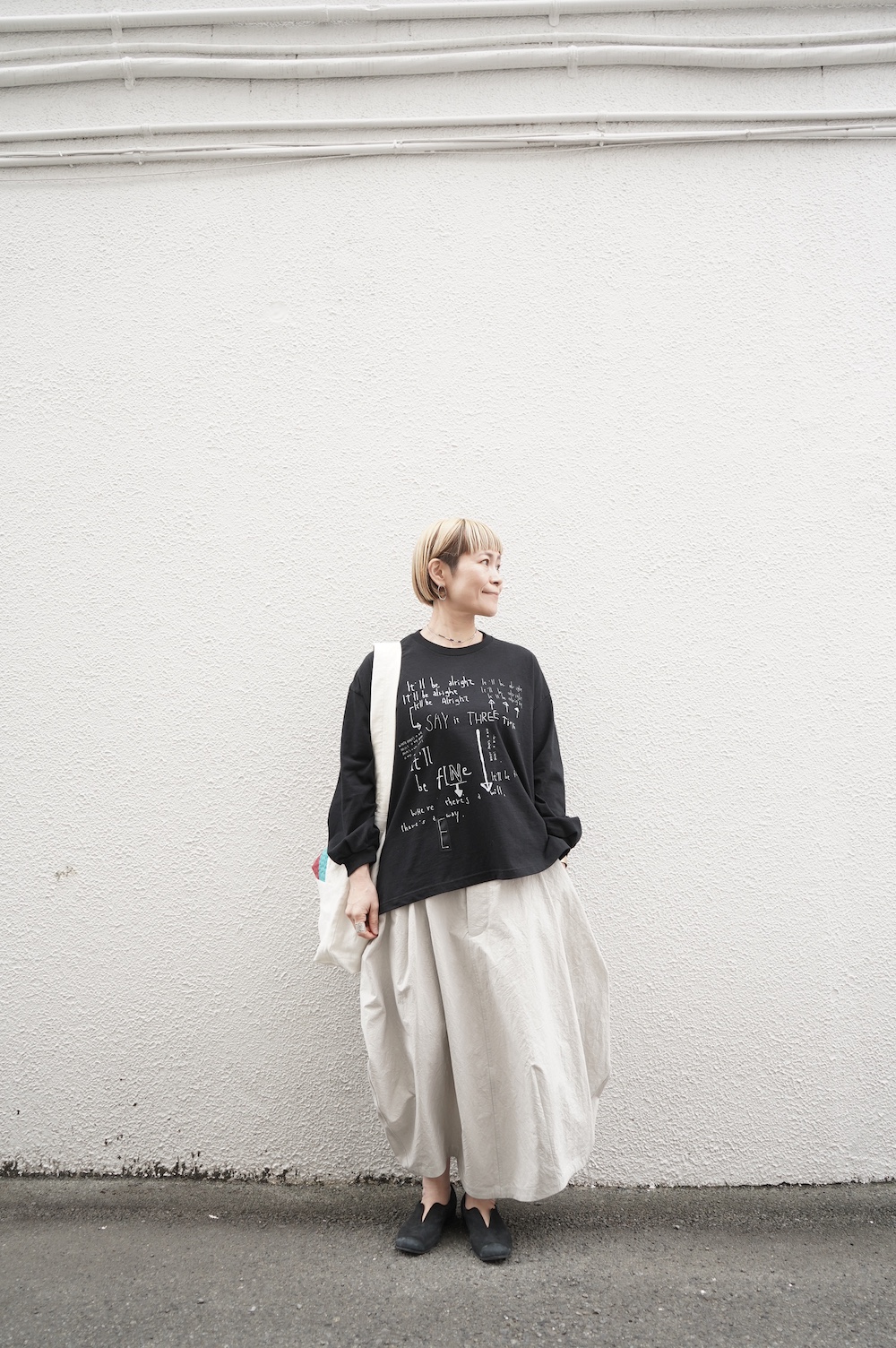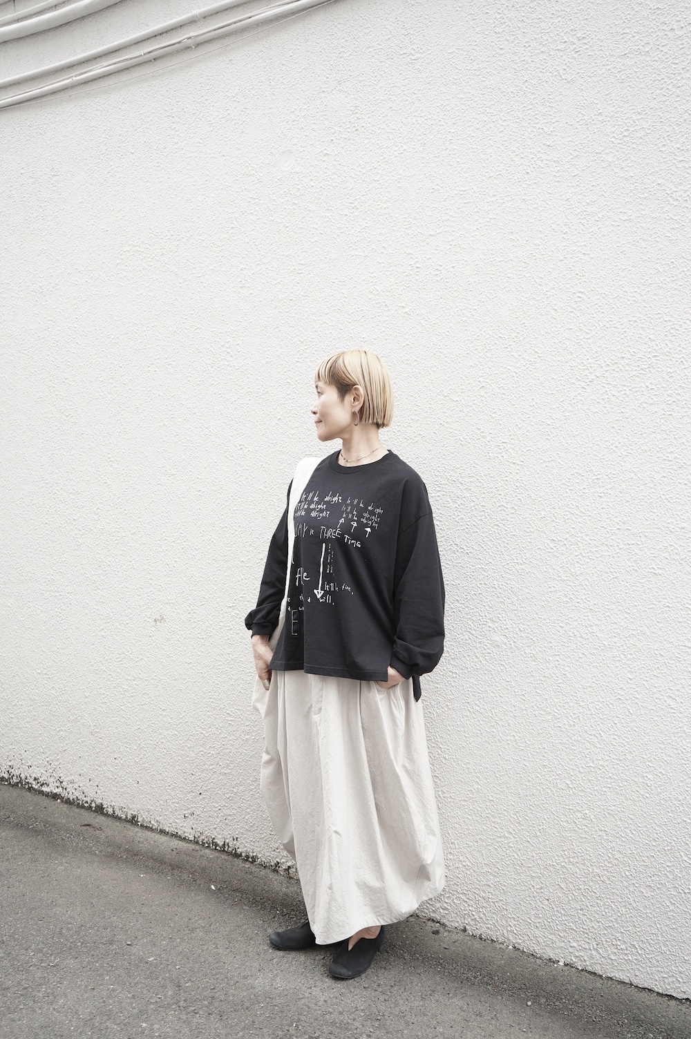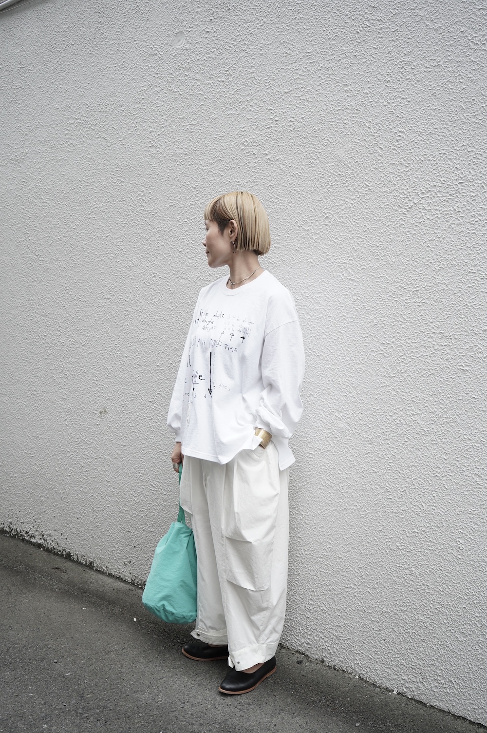 プリントTeeって大人になると特に女性は遠ざかるアイテムかもしれませんが、若者からのメッセージに力を貰うつもりで、ちょっと取り入れるのもありだと思います。僕はまさにそのつもり。久しぶりのプリントTeeにちょっとワクワクしています。人によっては「お家プラス」くらいな距離感で愛用するのも素敵ですよね。ワンちゃんのお散歩とか、近所のカフェに行く時とか。お父さんと子供にも無理やり着せてあげてください(笑)