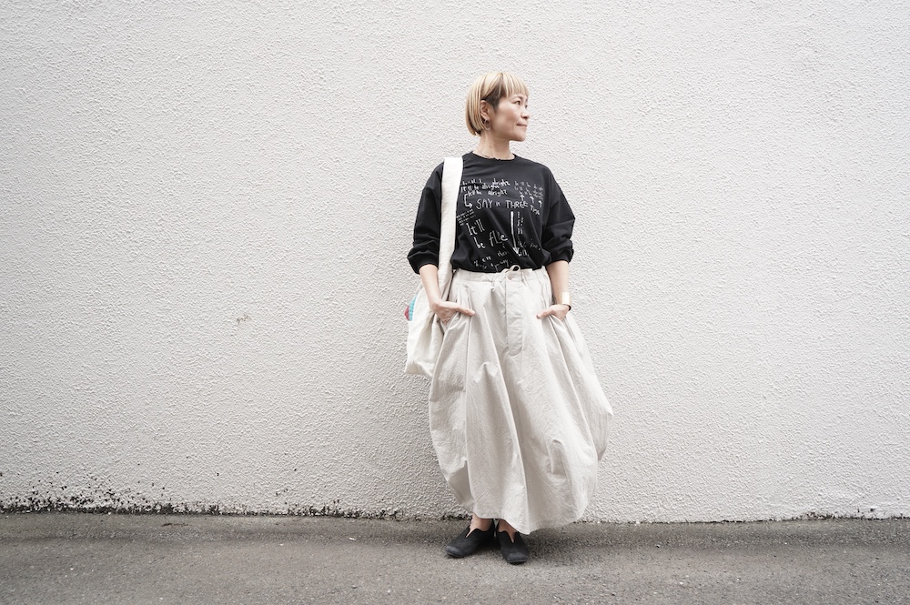 ブラックはHAVERSACKのスカートに合わせて