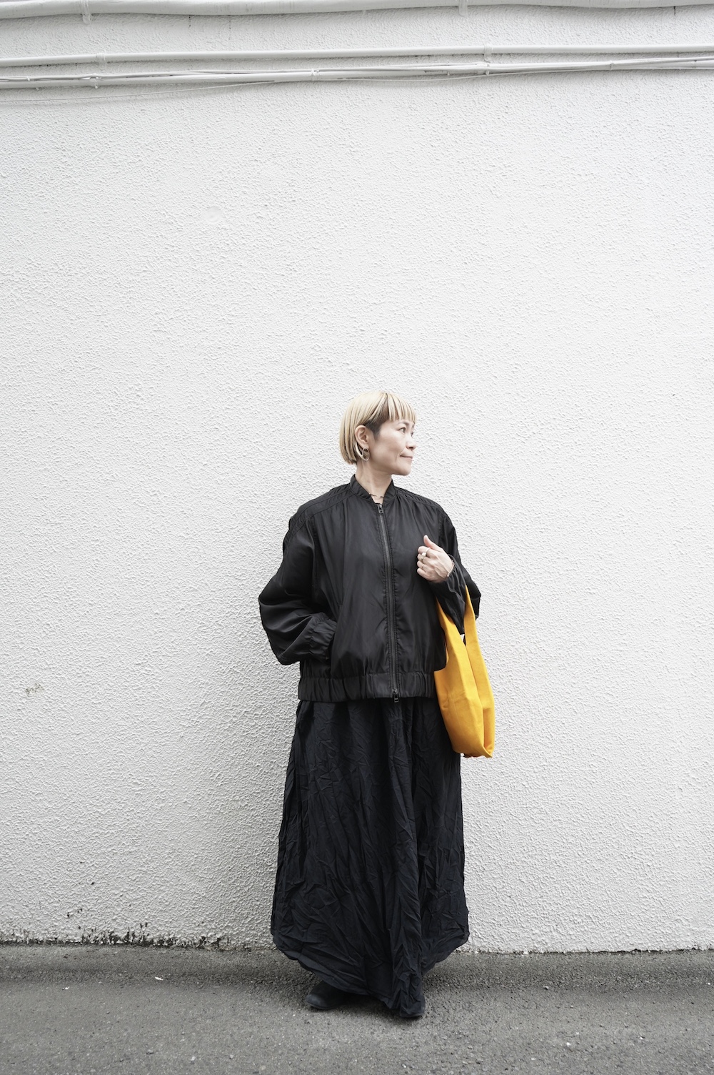 これもいろんなスタイリングが目に浮かびますね。真っ黒はもちろんかっこいい。下はワンピースでもいい。でもチノパンにキャップも素敵です。人によって全然違うだろうけどそれがいい。