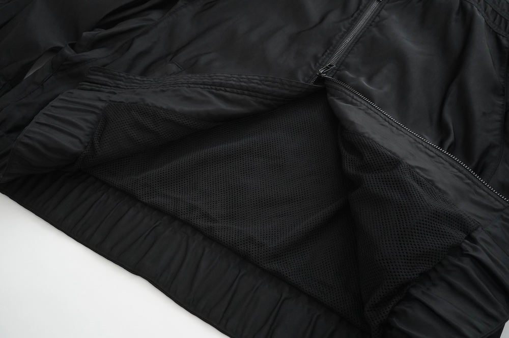 表地がしっとりとしたマットな光沢感のあるナイロンで、裏地はメッシュです。「これって季節はいつなんですか?」とも聞かれるんですが、冒頭に記した通り「季節の適性はまったく考えずに作っている」のが大きな特徴の一つなんです。しかし洋服として、春や秋ですから、3月、4月、10月、11月が一番着用する季節だと思います。