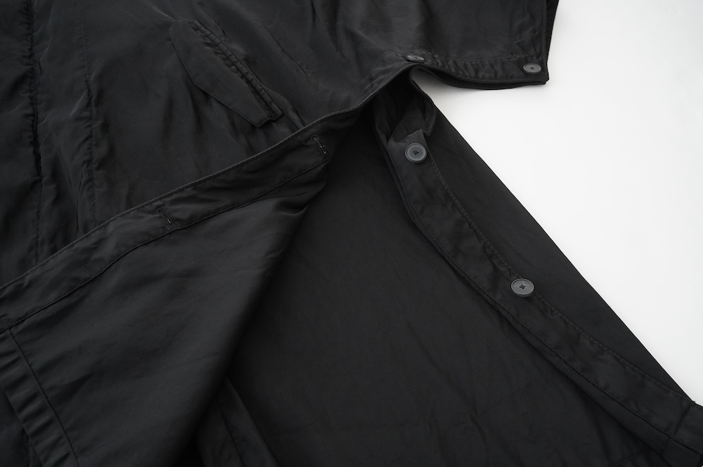 表地がしっとりとしたマットな光沢感のあるナイロンで、裏地はメッシュです。「これって季節はいつなんですか?」とも聞かれるんですが、冒頭に記した通り「季節の適性はまったく考えずに作っている」のが大きな特徴の一つなんです。しかし洋服として、春や秋ですから、3月、4月、10月、11月が一番着用する季節だと思います。