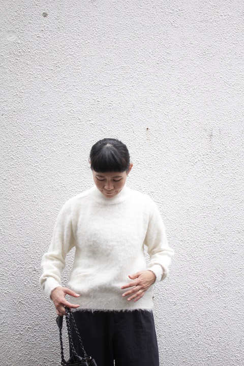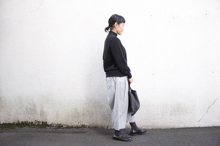 ゆとりのあるデザインがハイネックに良く似合う。