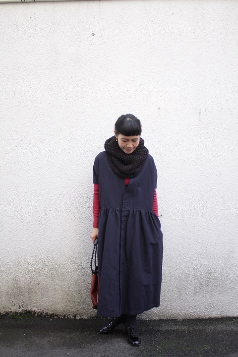 スヌードにしては珍しく、首元から胸元あたりまで、