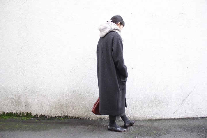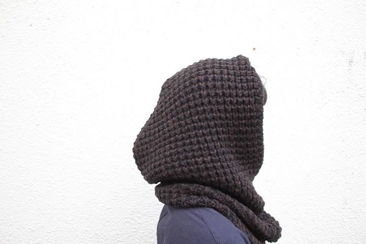 フードをおろすと、こんなに斬新で素敵なスヌードです。