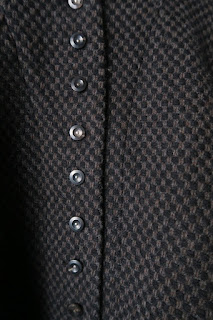 ノーカラーシャツをジャケット生地で作った服。