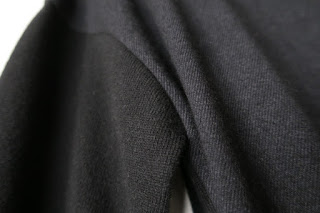 ネック部分は、背面からつながって、ニットのリブ編みです。