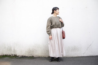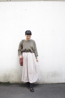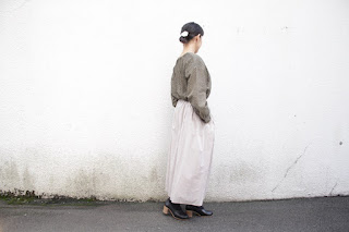 ピンタックギャザーで膨らんだ裾をスカートにタックイン。
