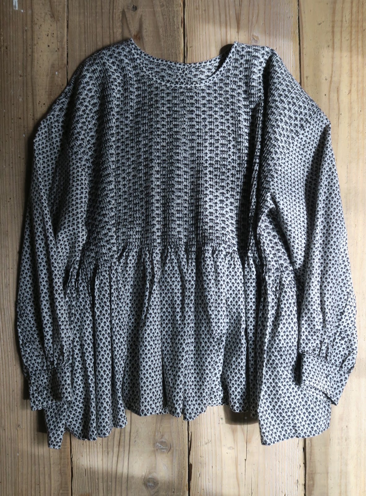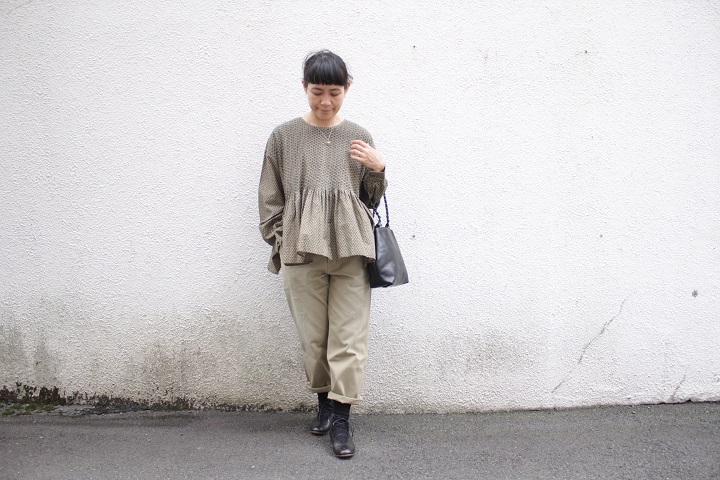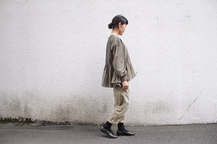 ピンタックギャザーで膨らんだ裾をスカートにタックイン。