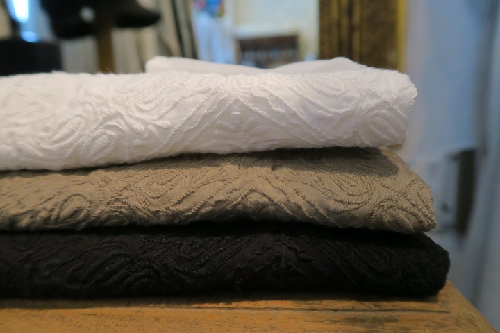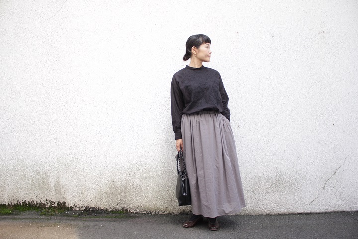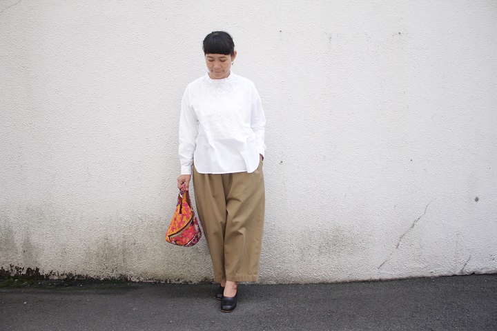 凹凸感のある手振りのミシン刺繍がとてもよく似合う。