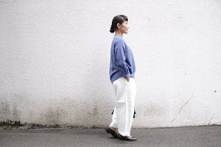 TRAVAIL MANUEL のワイドパンツにブルー。