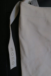 ブランドタグ代わりのレザーリボンに、「sono」の