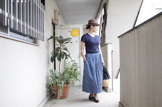 シンプルなポルカドットのスカートは、日本の夏の風物でいいと思う。