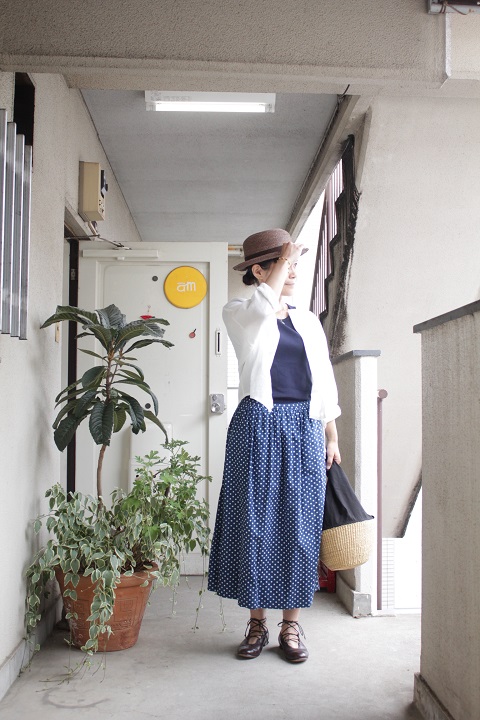 シンプルなポルカドットのスカートは、日本の夏の風物でいいと思う。