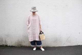 TRAVAIL MANUEL のリネンボレロカーデを袖まくりして。