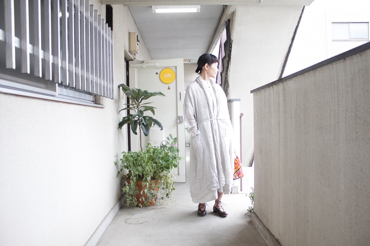 TRAVAIL MANUEL のリネンボレロカーデを袖まくりして。
