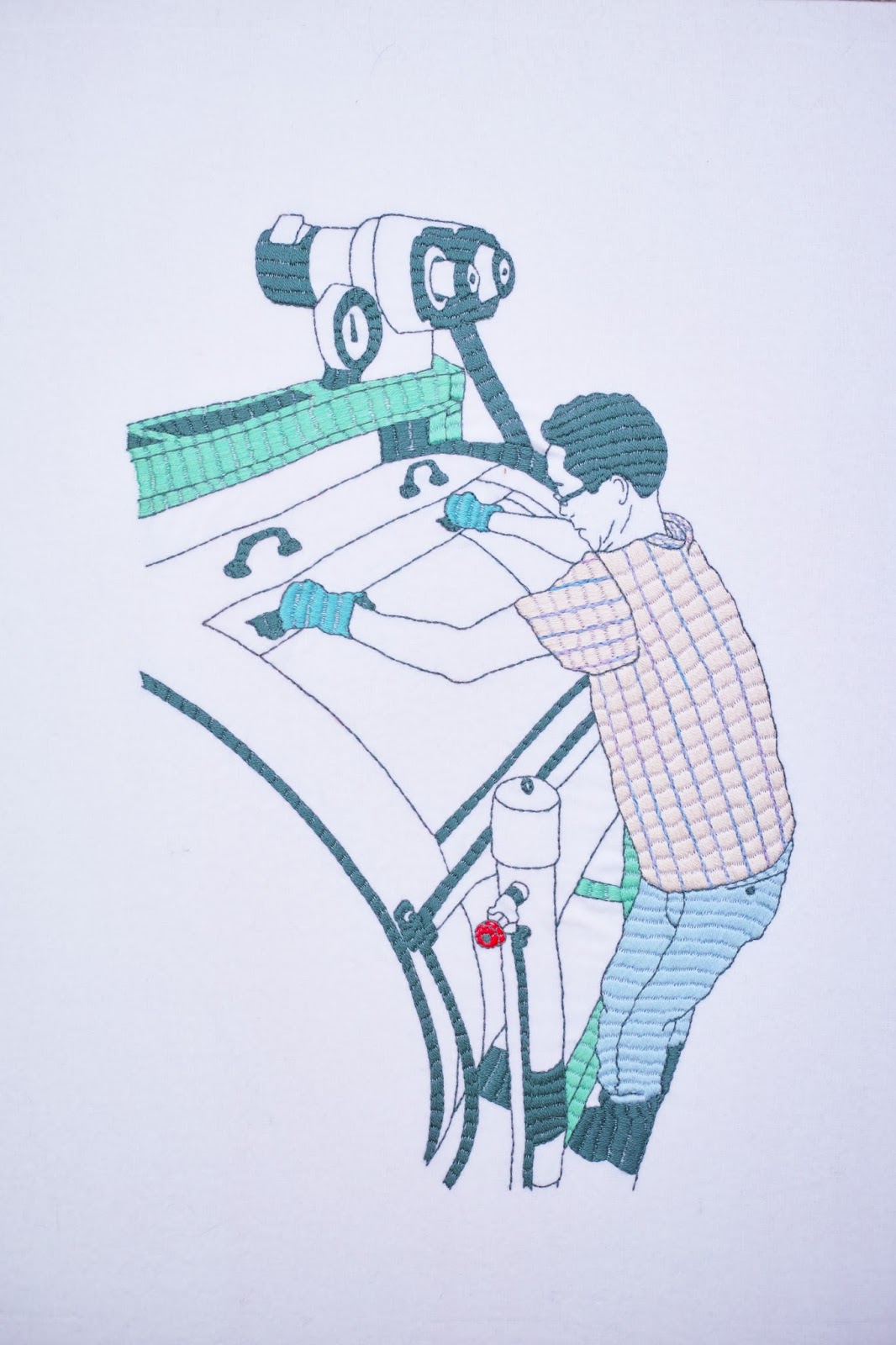 工場を訪れ、見学させていただきながら、作品のモチーフとして