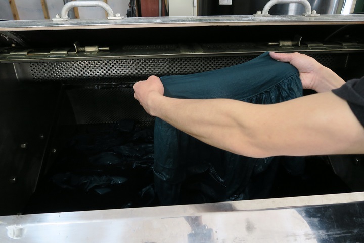ヨコ糸を抜いて、整える。丁寧な仕事です。