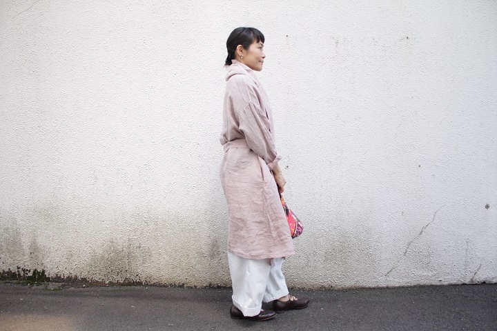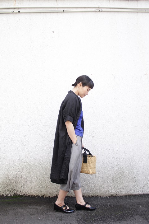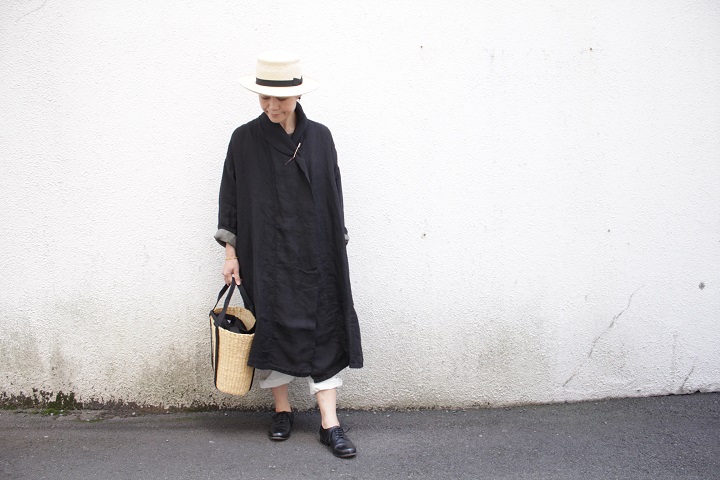 麻素材のカジュアルさをいい意味で裏切るシックな雰囲気です。