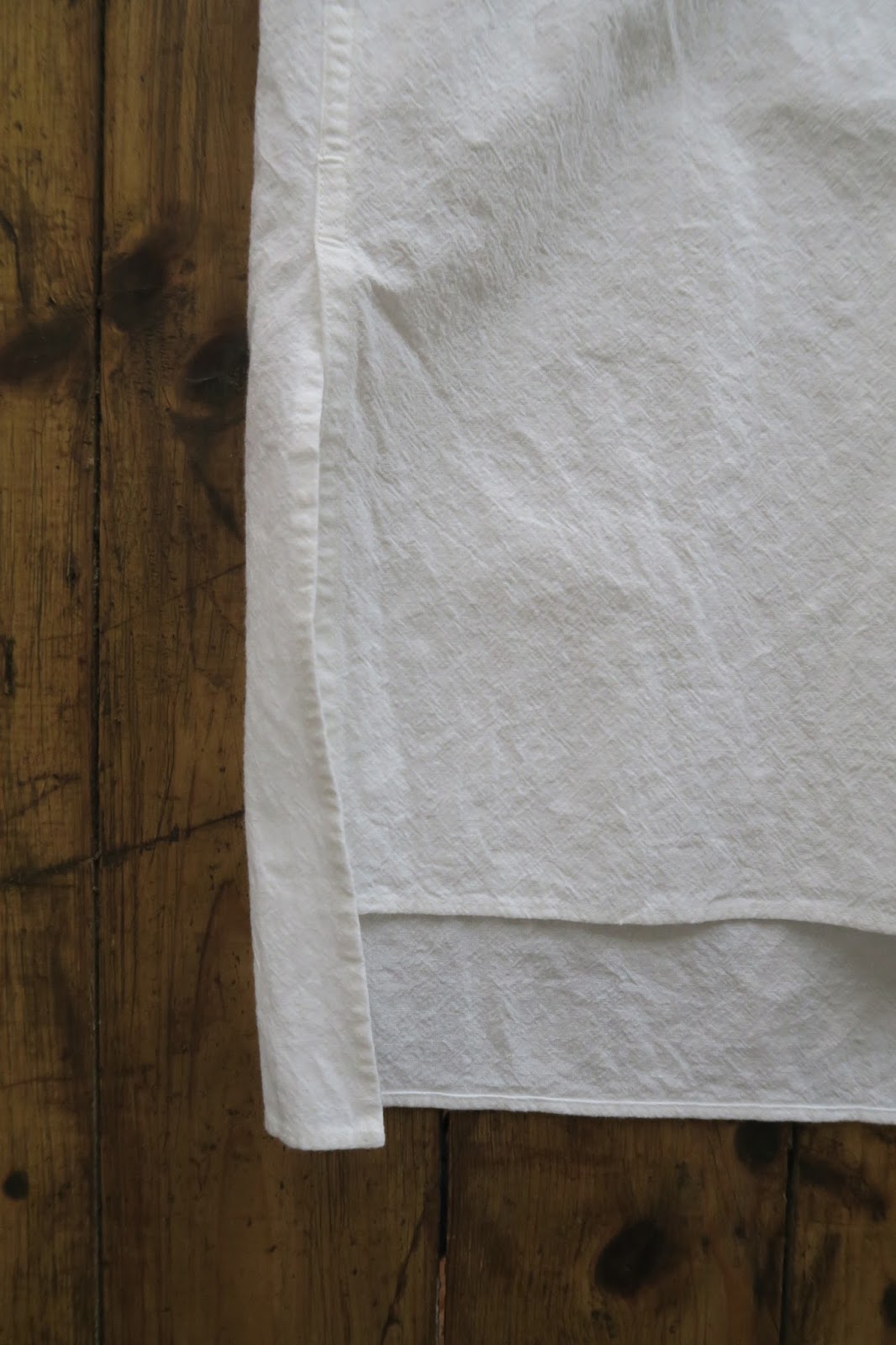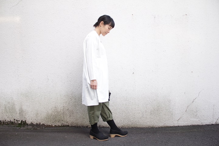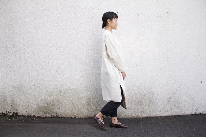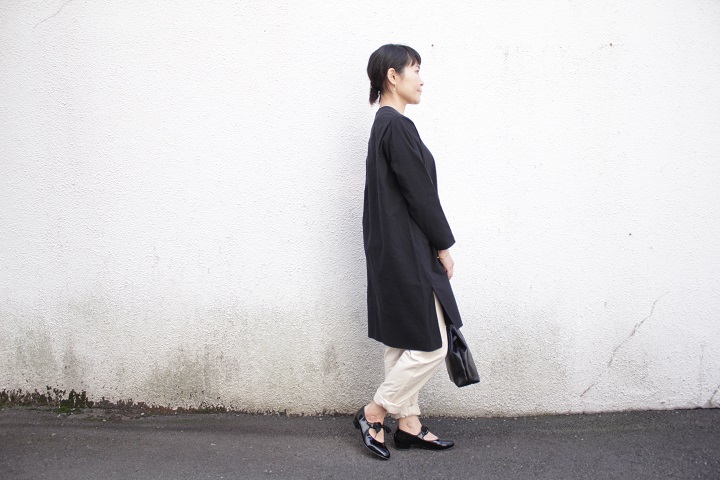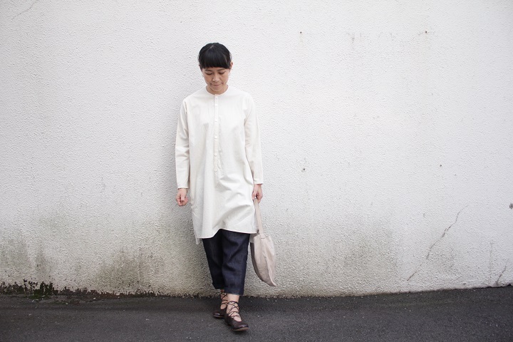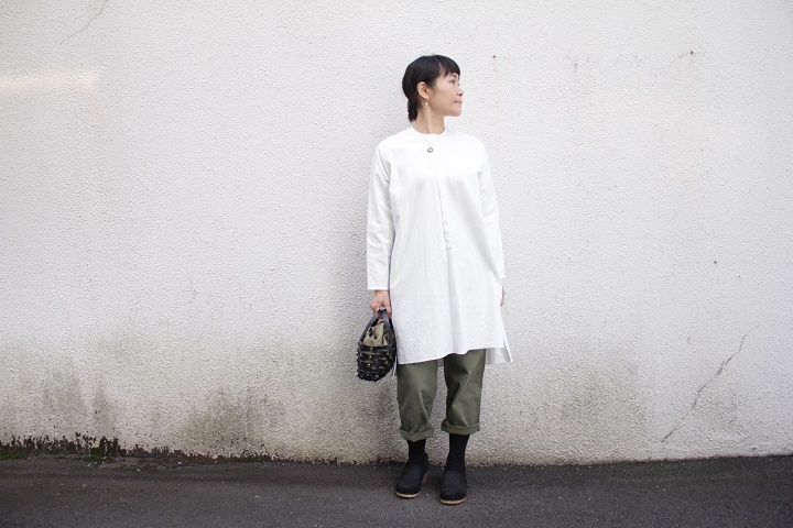 あわや男性的になりがちなヘンリーネック的なデザインも、