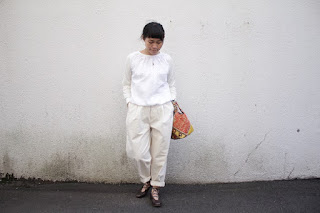 簡単な袋バッグも、レザーを選ぶといい感じ。
