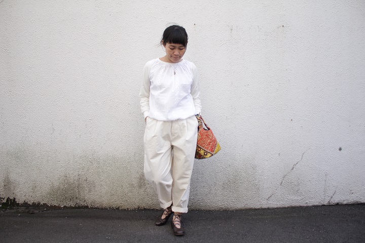ヴィンテージリメイクのバッグで、オリエンタルな雰囲気に。