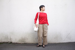 長袖Tシャツに合わせて、ラフなスタイリング。