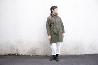 ホワイトパンツで、ややメンズのミリタリースタイルを