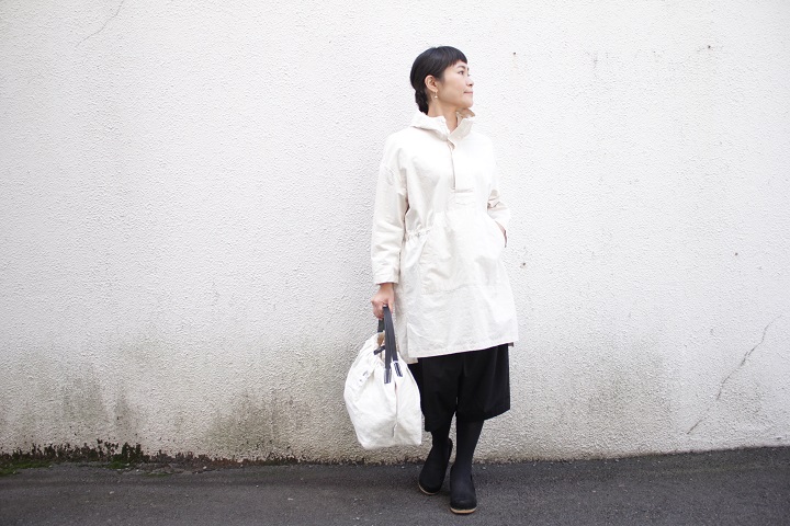 絞りをゆるくして、ストーンと着る感じもかっこいい。