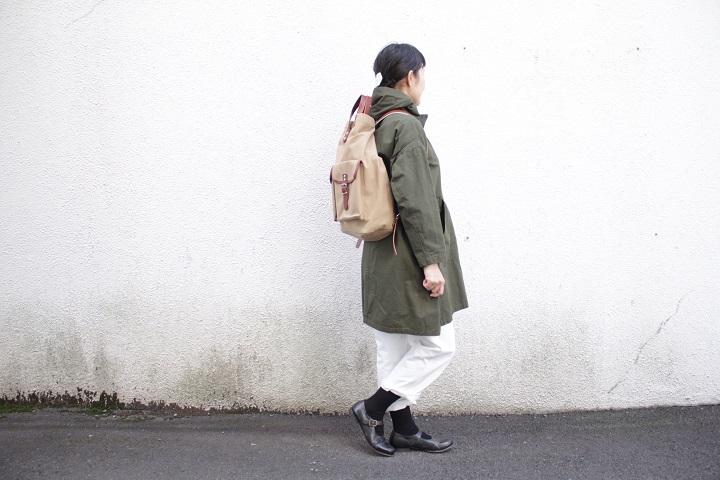 ホワイトパンツで、ややメンズのミリタリースタイルを