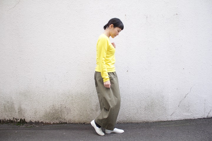 素材はバルーンパンツと同じ、コンパクトチノクロス。