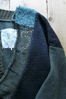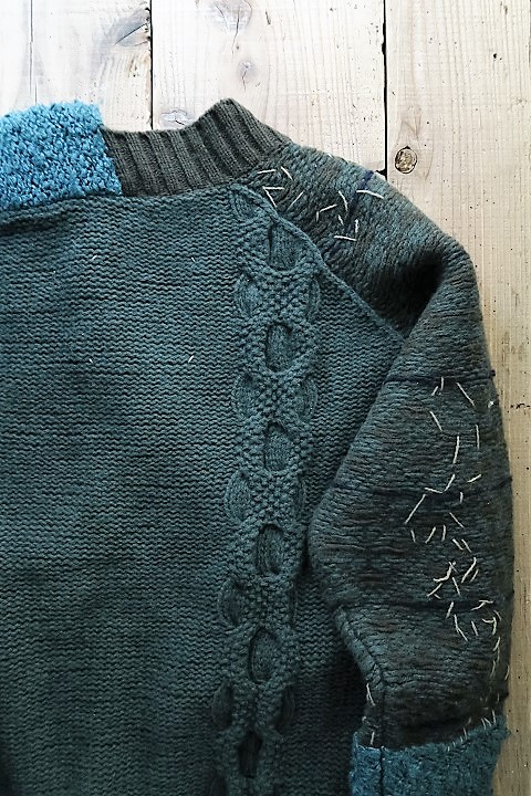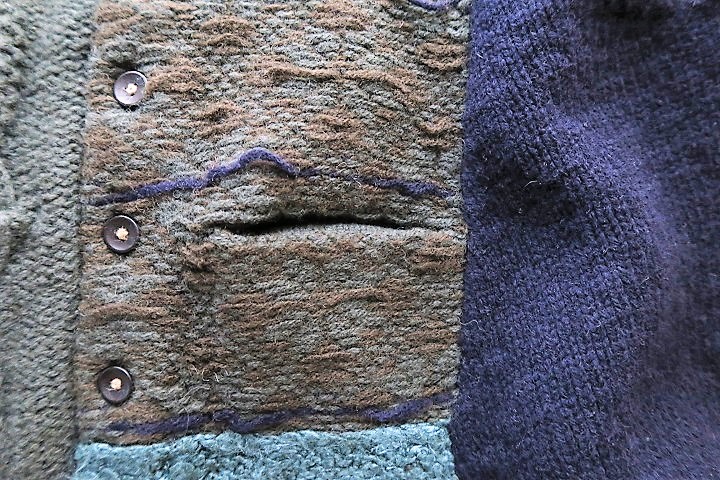 袖の素材、編み方が左右で異なります。