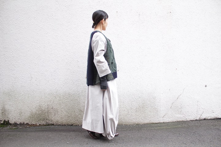 上からSOIL の大判ストールを垂らします。