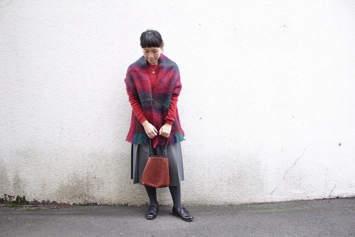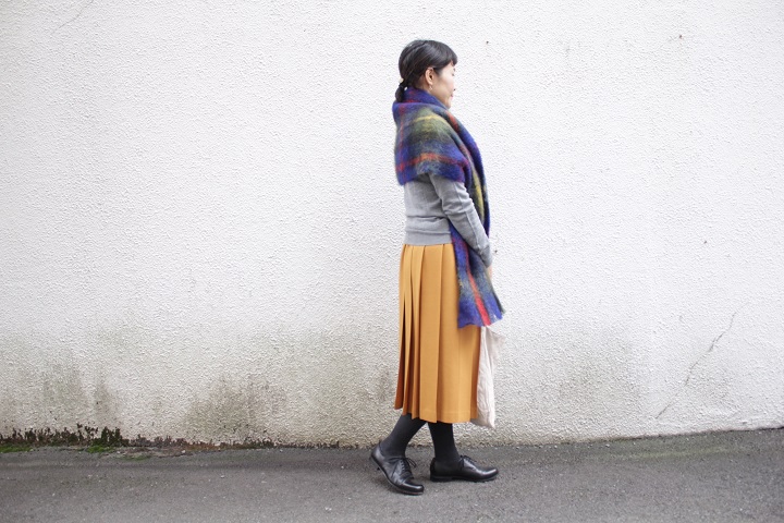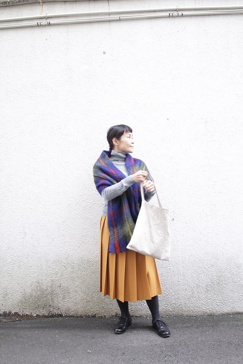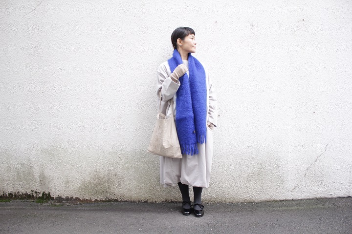 ネイビーは、コートの上から巻いてみました。