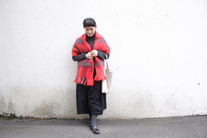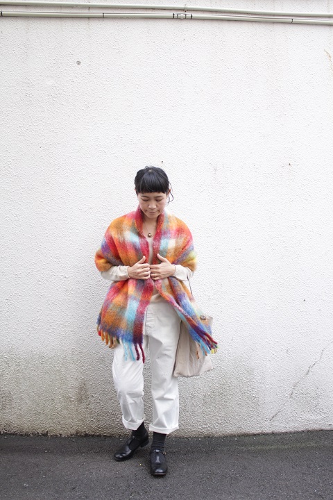 マフラーサイズは、フリンジがかわいらしい。