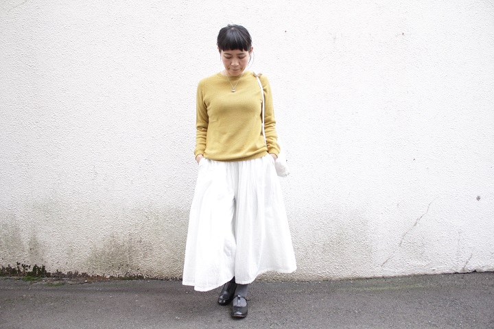 ボトムスは、一年定番の「ao」のガーゼキュロット。