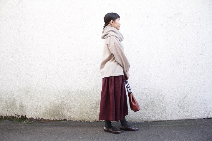 ボルドー×ベージュはとても女性らしい。