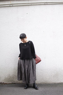こちらは、ゴーシュのWOOLワイドパンツにオリーブ。