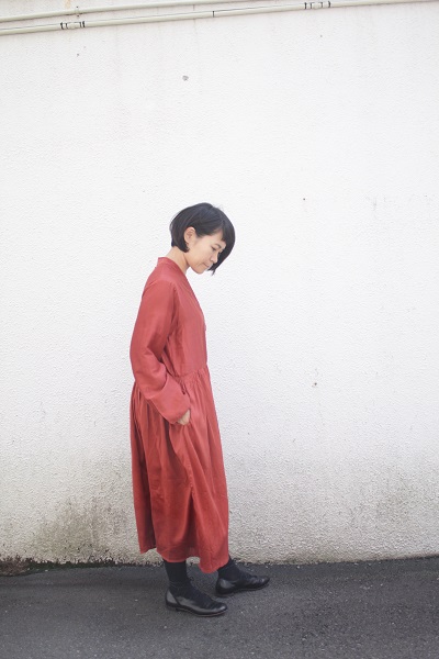 ビーズ刺繍のGASA の大判ストールを垂らして。