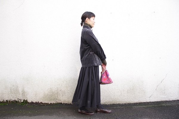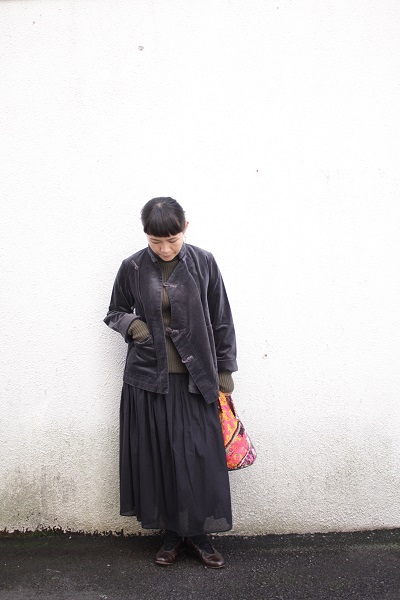 オリエンタルな雰囲気にmaison de soil のスカートが良く似合う。