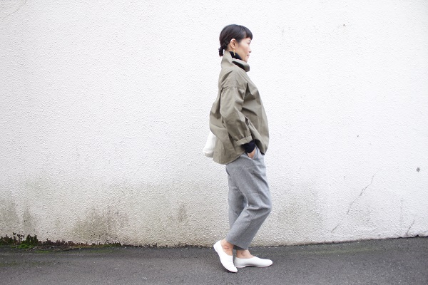 以前にご紹介したギャザーワイドパンツと同素材で、