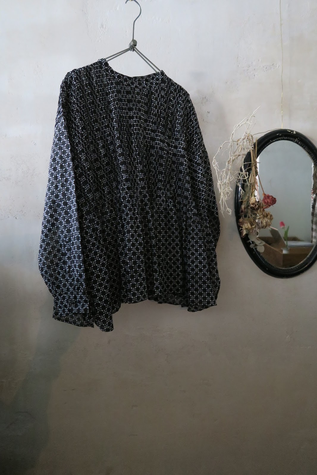 ヴィンテージブロックプリントランダムプリーツブラウス
