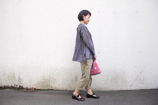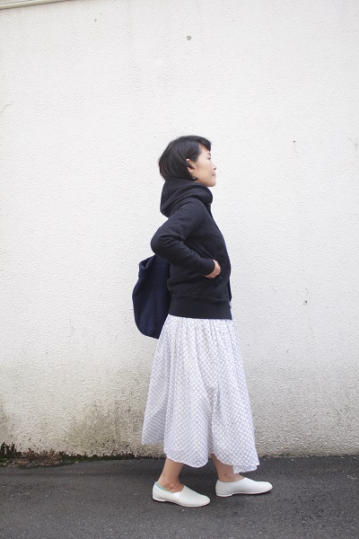 前開きという特徴を生かし、いろいろ着まわせます。
