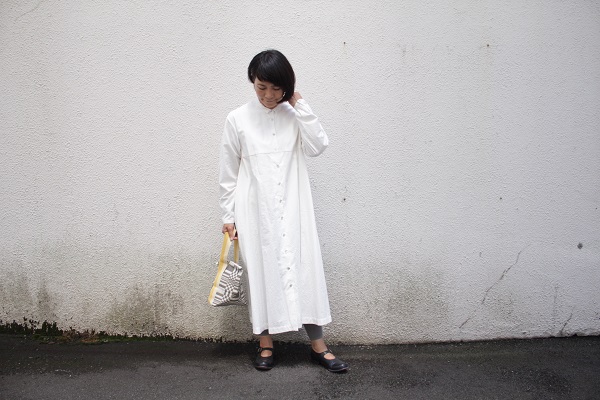 正面からは、とてもシンプルなシャツワンピース。